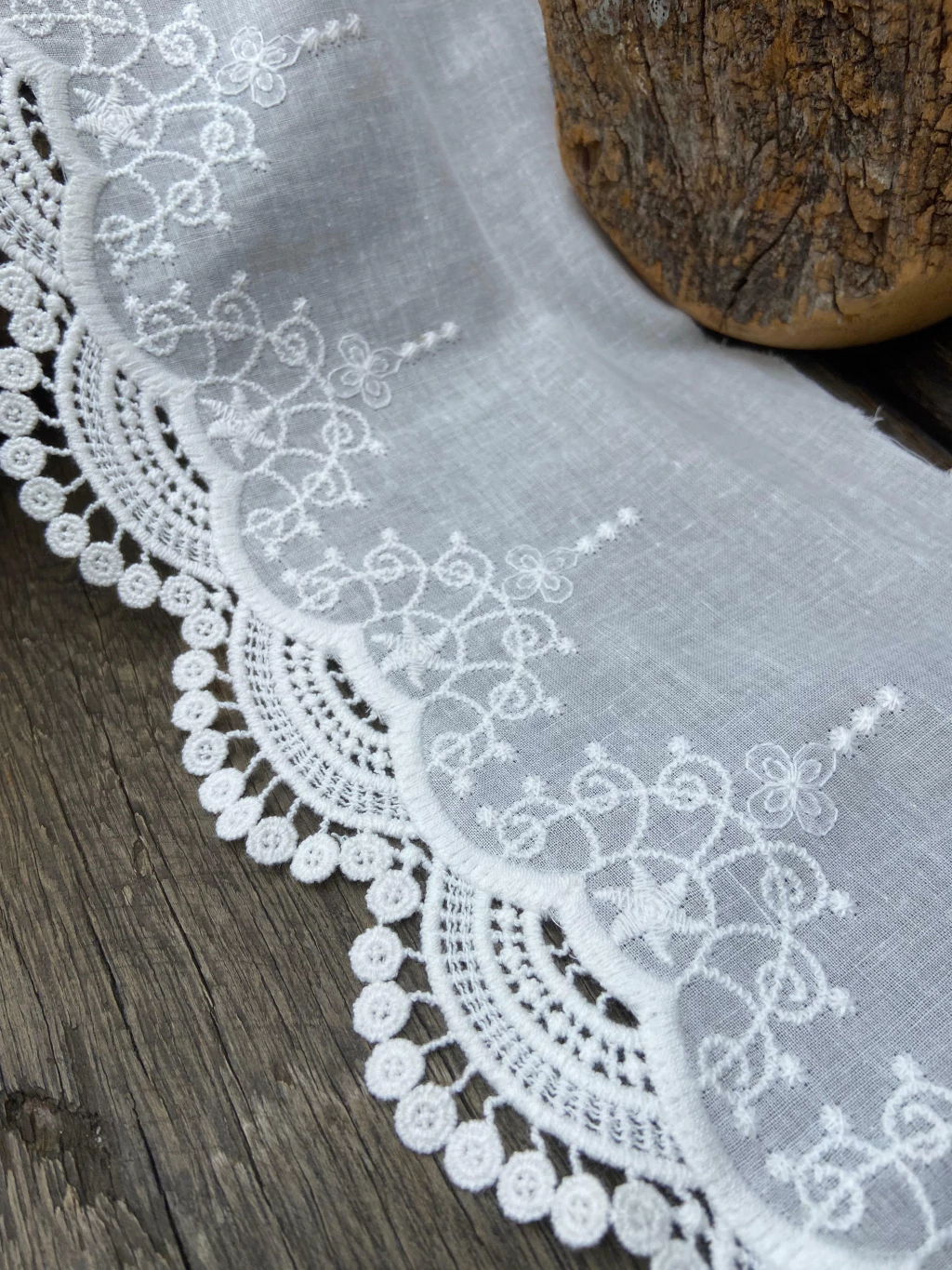 Descubra o encanto da Renda 23 - Bordado Inglês, um clássico atemporal que traz elegância e sofisticação a qualquer criação artesanal. Com seu bordado minucioso e delicado, essa renda é a escolha perfeita para quem deseja adicionar um acabamento especial e cheio de personalidade em peças de roupa, enxovais de bebê, toalhas, cortinas e decorações em geral.